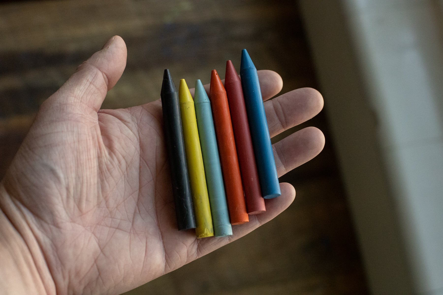I’m so excited to introduce my new classic crayon! These medium-firm crayons feel just like the ones you loved as a kid. Their buttery consistency allows you to easily apply fully saturated color while maintaining a high level of control and tonal variation. These are much softer than my pencils. While shading is still possible, the softness allows for more expressive marks. They stay true to color up to cone 10, can be sharpened with a standard, large-sized pencil sharpener, and are fully erasable before firing making them an extremely forgiving medium to experiment with.